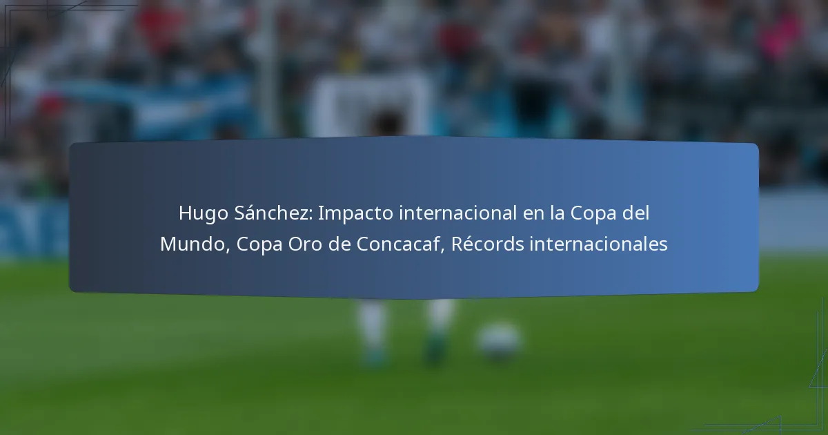 La carrera internacional de Hugo Sánchez está marcada por logros significativos, incluyendo múltiples apariciones en la Copa Mundial de la FIFA y victorias en la Copa Oro de la Concacaf. Su capacidad goleadora ayudó a México a asegurar una posición sólida en las competiciones internacionales.
